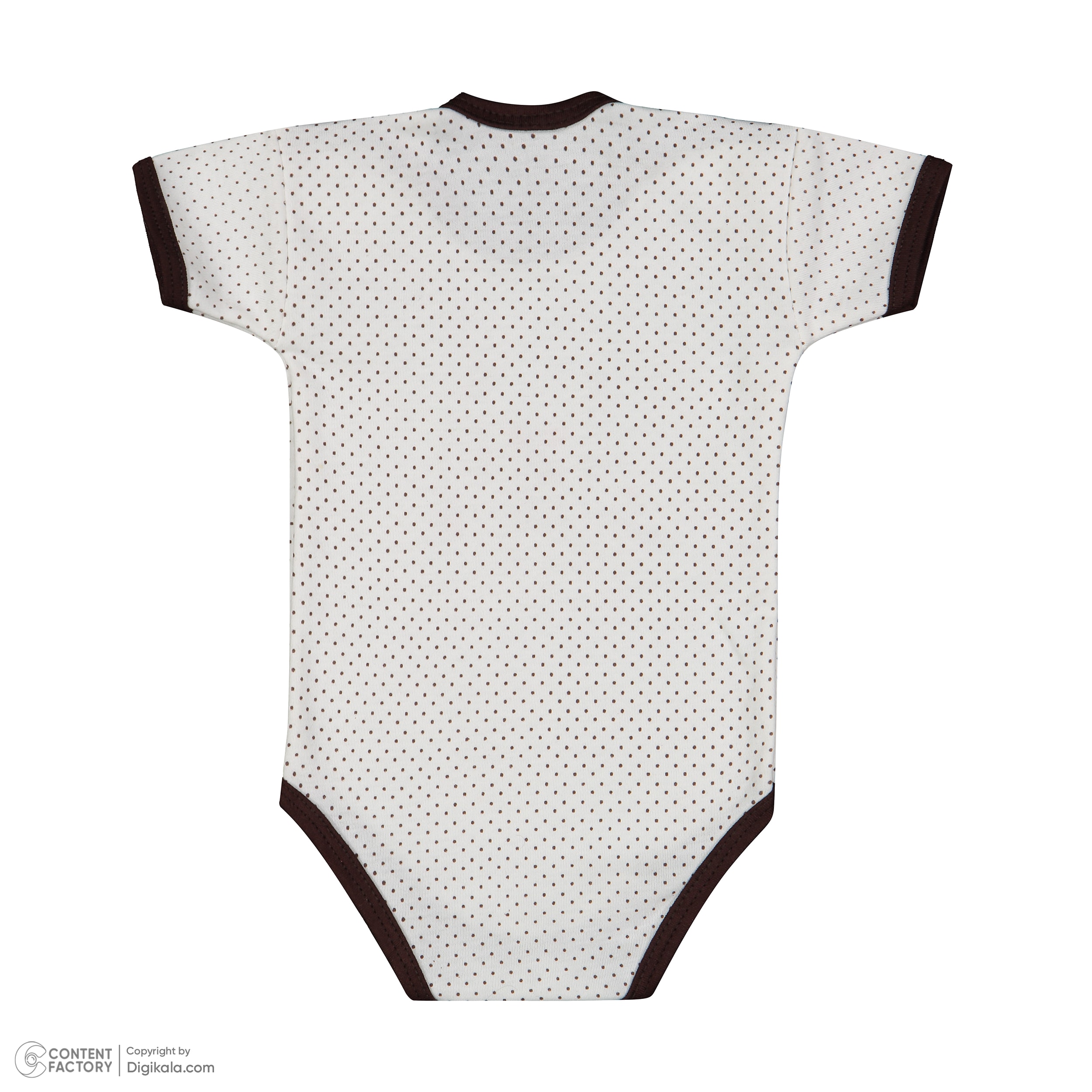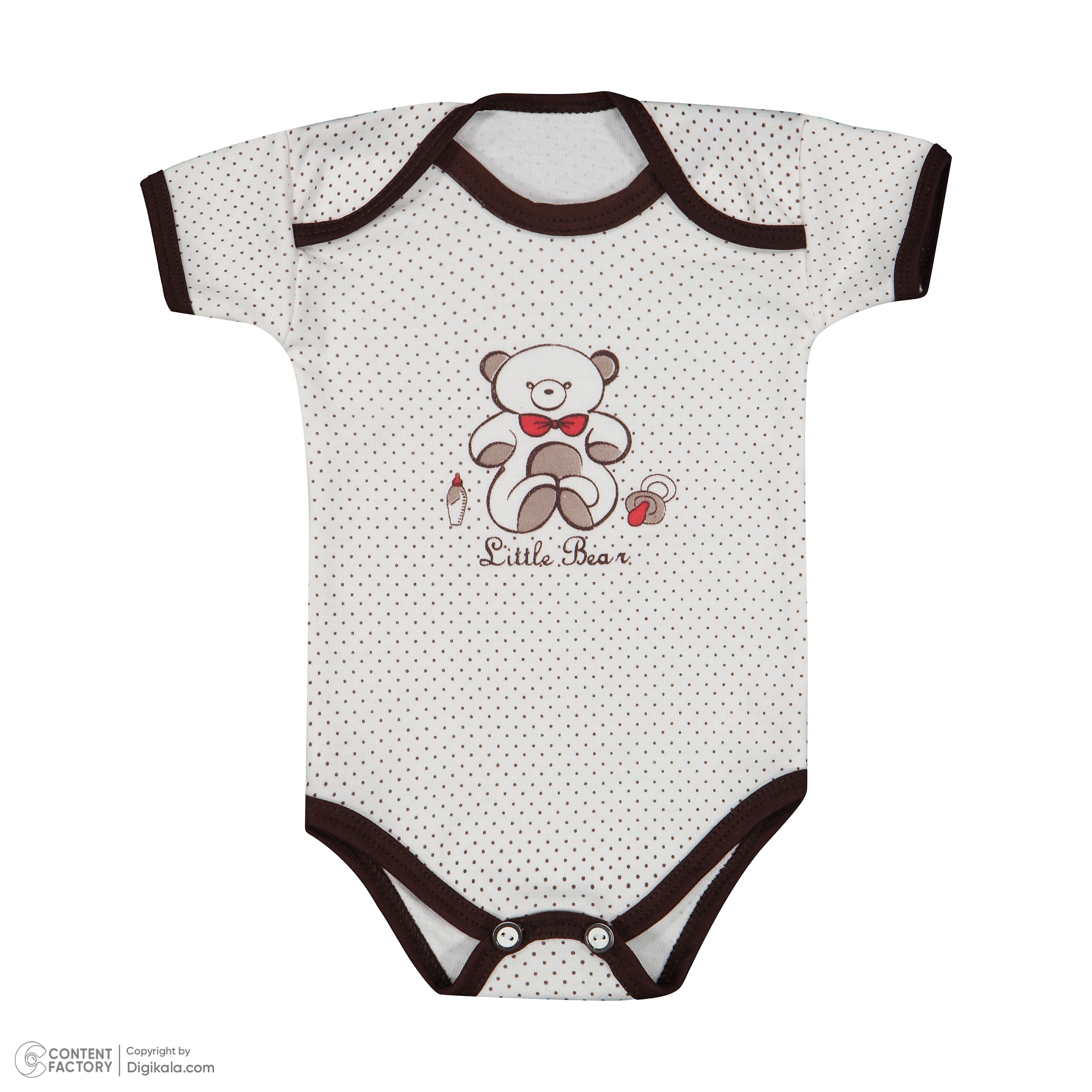 بادی آستین کوتاه نوزادی مدل خرس خالدار، یکی از لباسهای ضروری و محبوب در سیسمونی نوزاد است. این بادی با طراحی ساده و کودکانه، ظاهری شیرین و منظم برای نوزاد ایجاد میکند. چاپ عروسکی خرس در قسمت جلو به همراه پارچه خالخالی، ترکیبی جذاب برای والدینی است که به ظاهر لباس نوزاد اهمیت میدهند.
