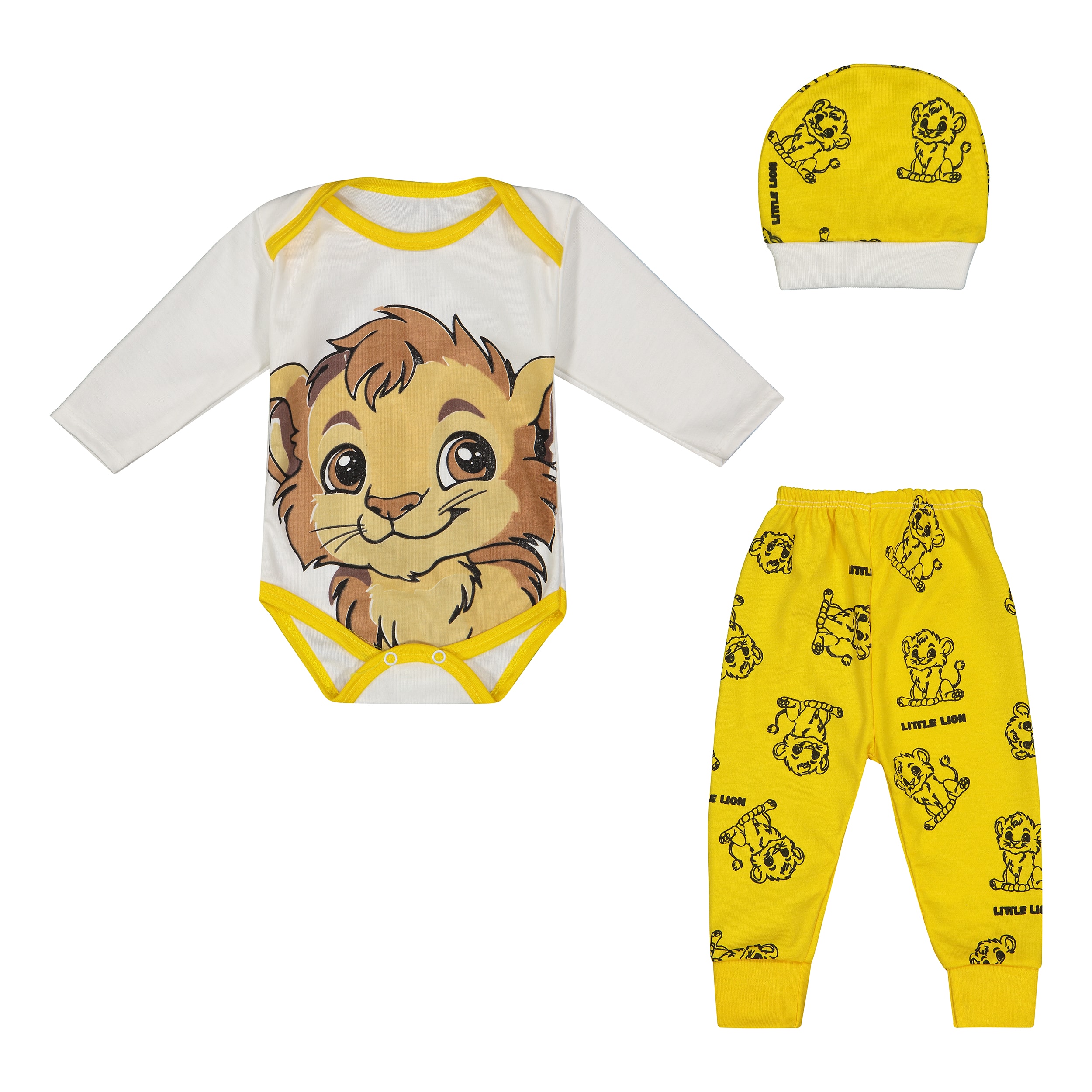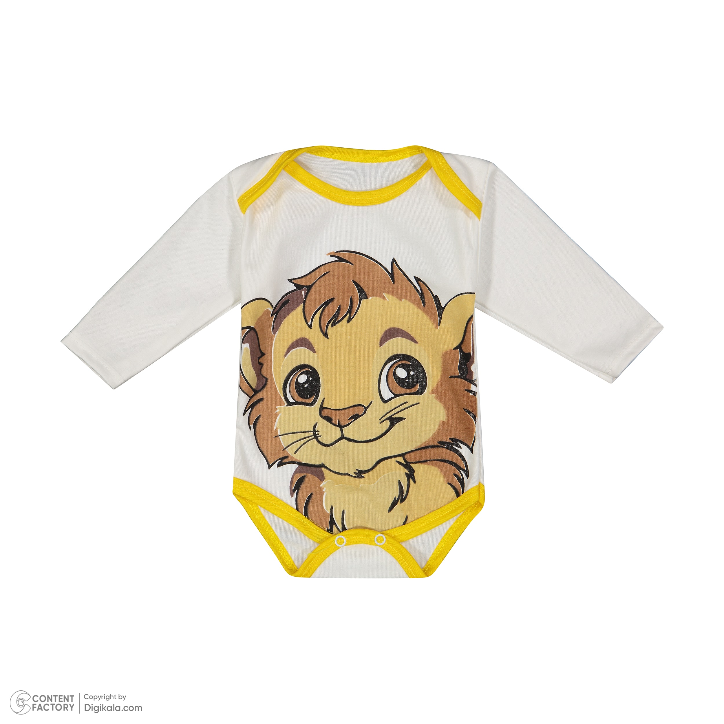 بادی آستینبلند زیر دکمهدار: با چاپ برجسته شخصیت کارتونی «سیمبا» و دوردوزی زرد.