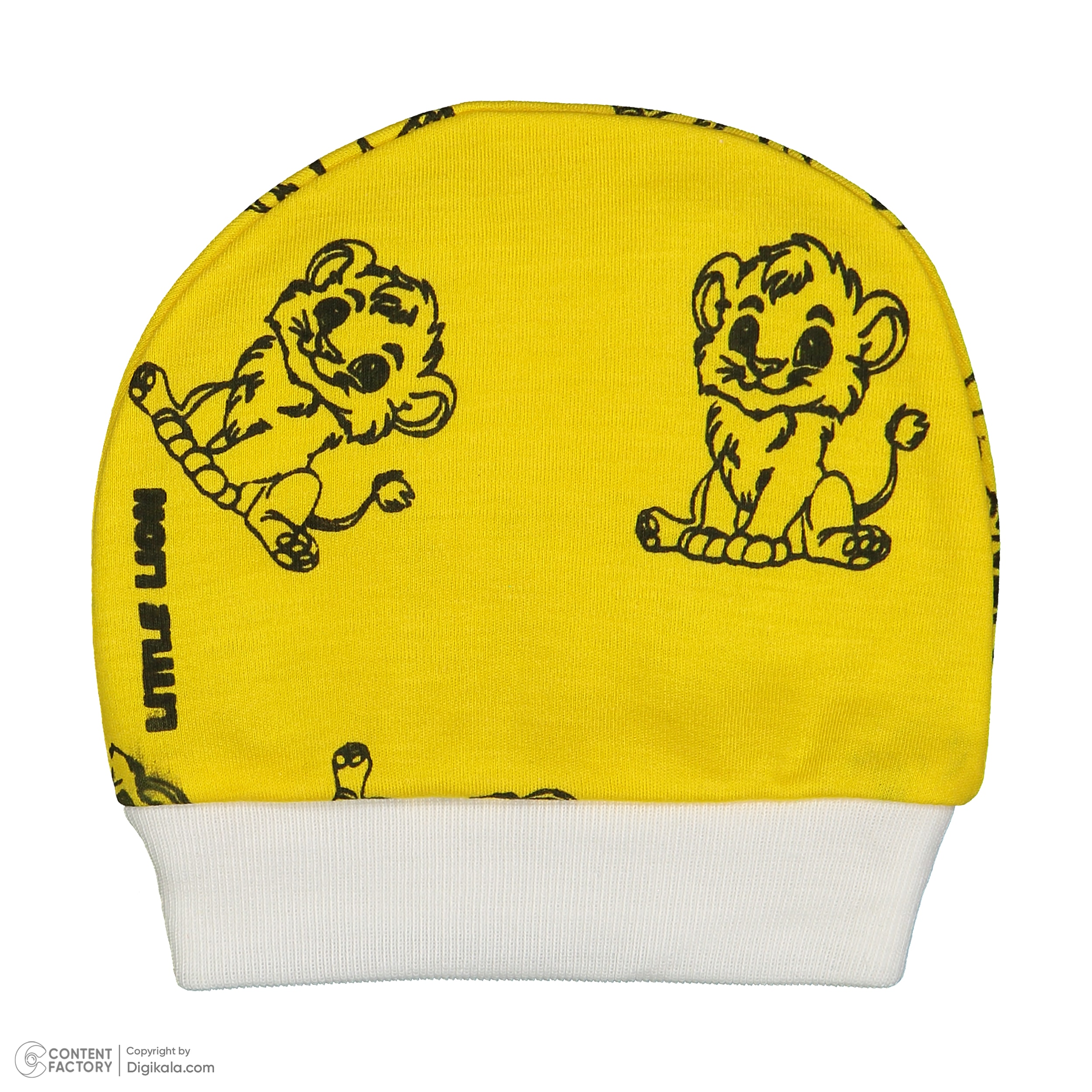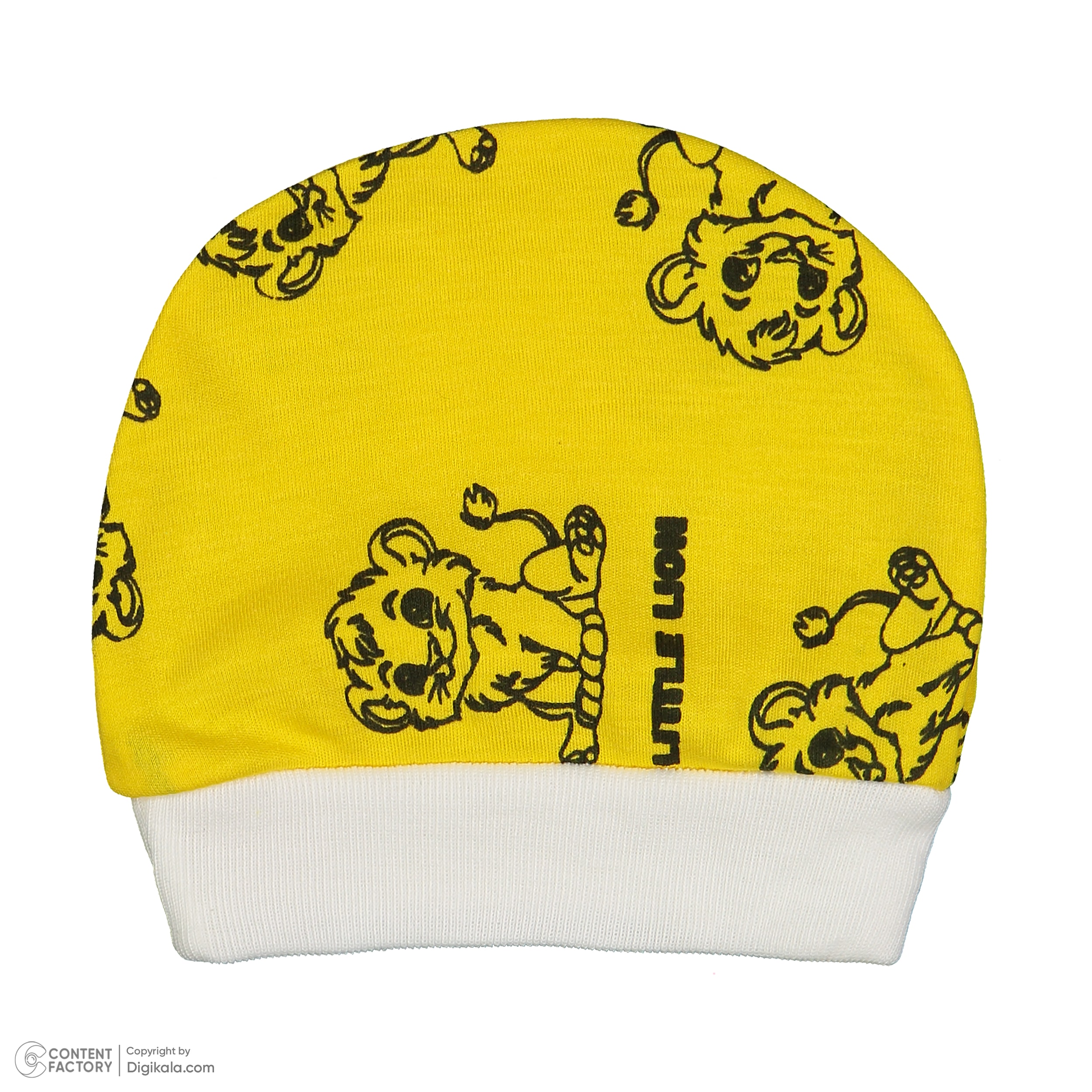 کلاه نوزادی: ست کامل با شلوار، دارای لبه کشی لطیف و چاپ شخصیت کارتونی.