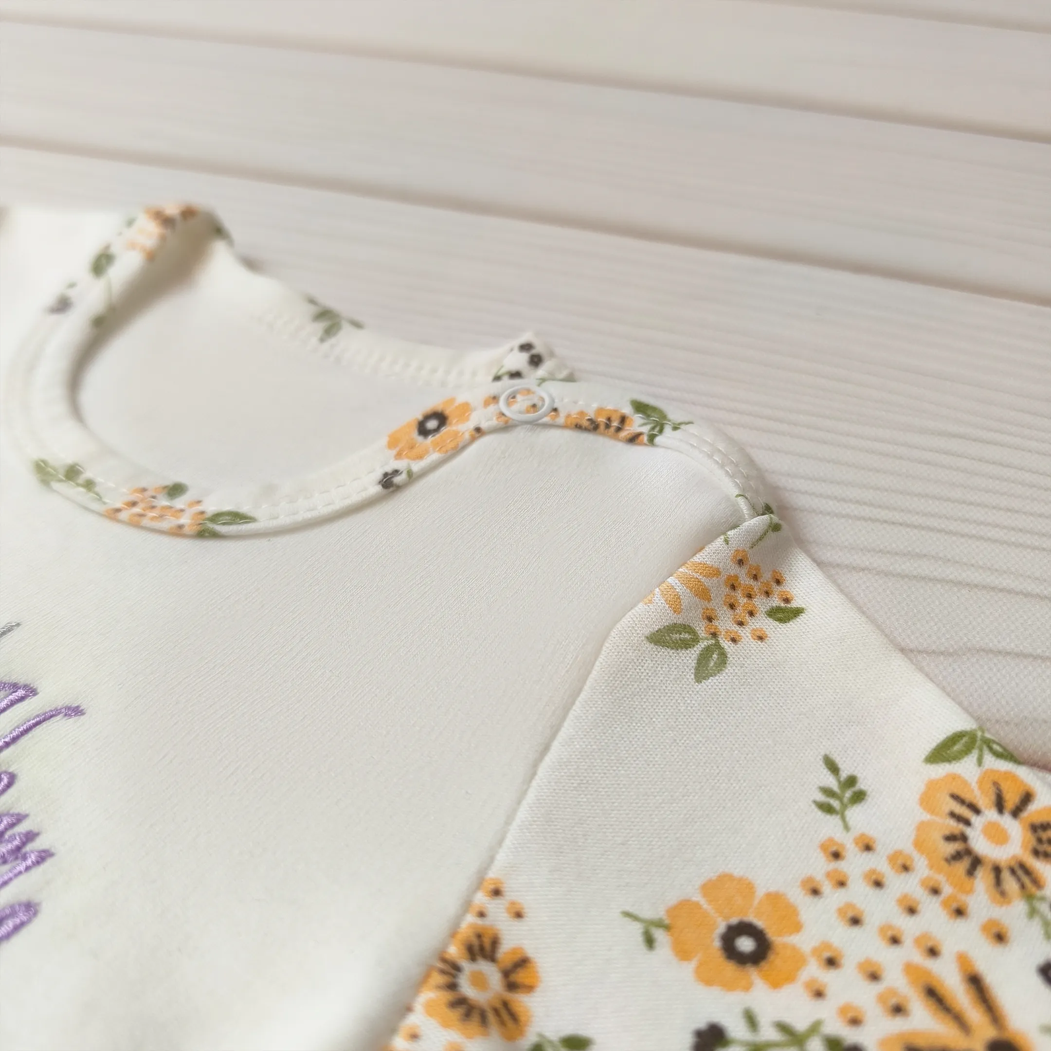 این بلوز با طراحی خاص و پارچهای نرم، راحتی و استایل نوزاد شما را تضمین میکند. دکمه فشاری کنار یقه، تعویض لباس را سادهتر میکند و گلدوزیهای ظریف، جلوهای خاص به ظاهر کودک میبخشند. این لباس انتخابی عالی برای استفاده روزمره و هدیه دادن در سیسمونی است.