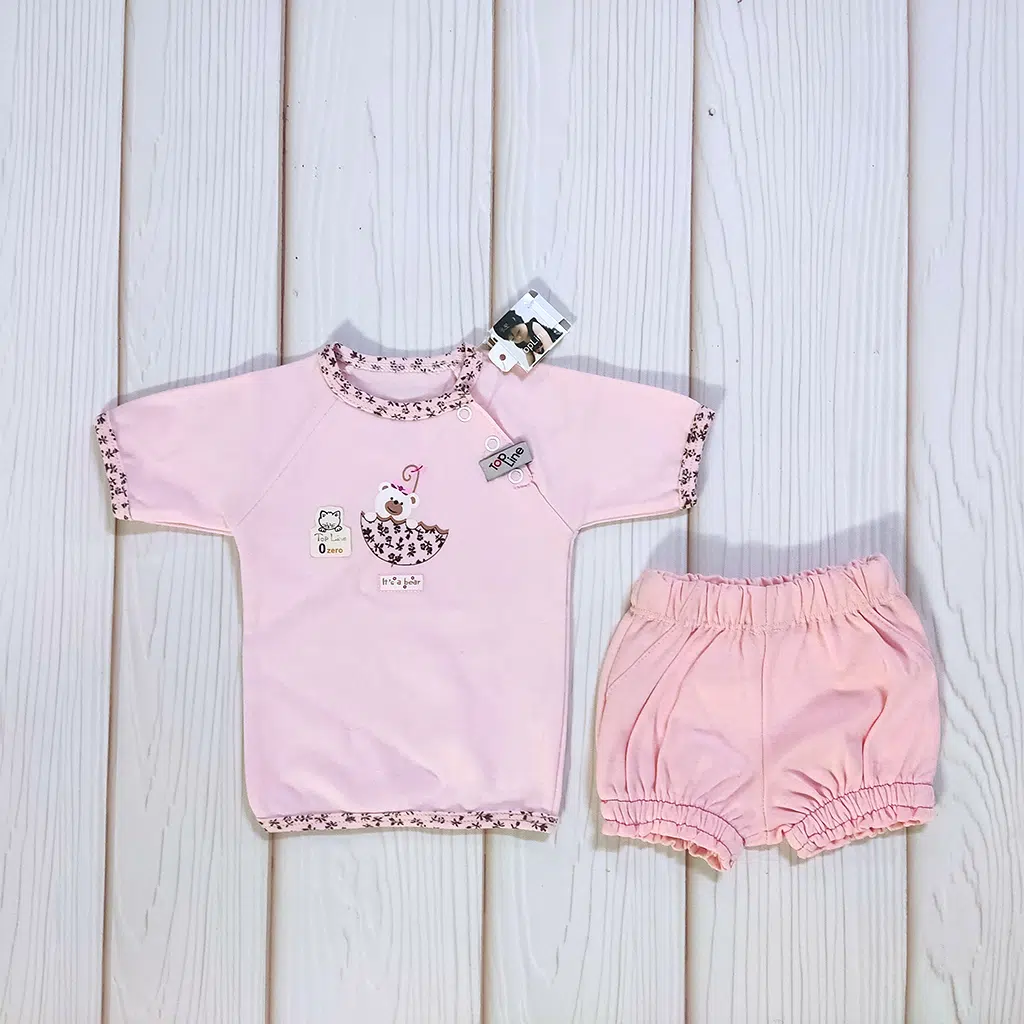 ست تیشرت و شورت نوزادی صورتی – صفر تا سه ماه