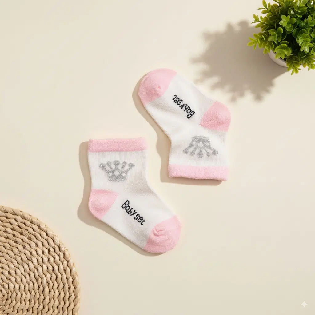 ترکیب رنگ سفید و صورتی به همراه طرح بامزه تاج روی جوراب، ظاهر جذاب و دخترانه‌ای ایجاد می‌کند و به راحتی با سایر لباس‌های نوزادی ست می‌شود. این جوراب علاوه بر زیبایی، بسیار سبک و تنفس‌پذیر است و از تعریق پاهای کودک جلوگیری می‌کند.