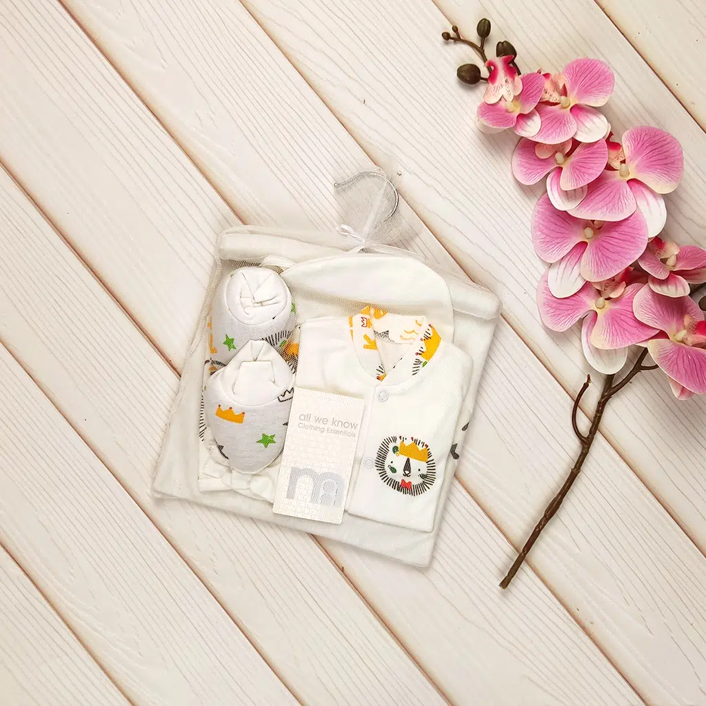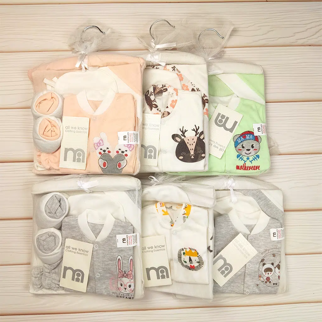 تمامی تکهها با دقت بالا دوخته شدهاند و طراحی بستهبندی توری شفاف و زیبا، این ست را به گزینهای عالی برای هدیه سیسمونی نوزاد تبدیل کرده است.