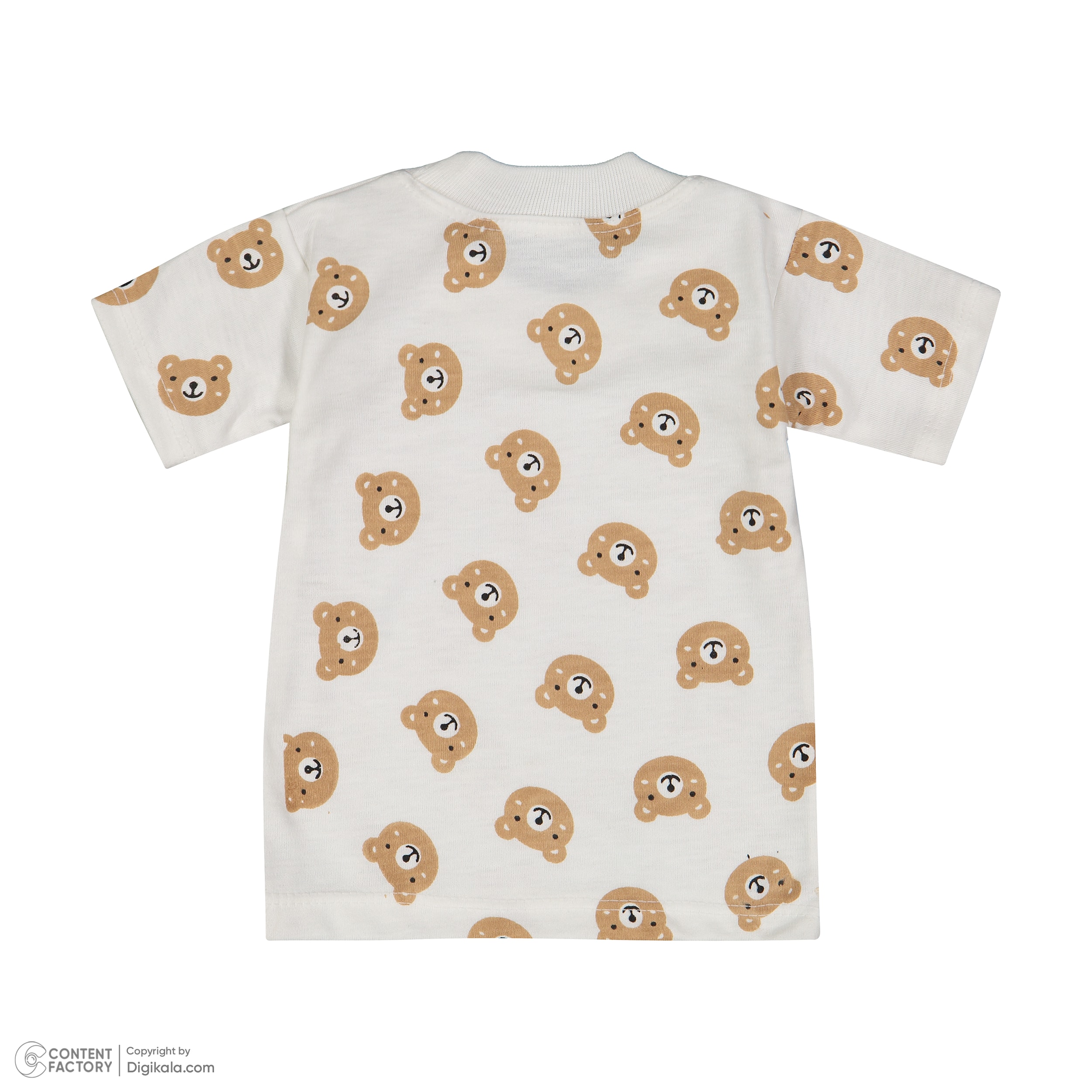 تولیدکنندگان از پارچهی باکیفیت پلیاستر پنبه اعلا برای دوخت این لباس استفاده کرده اند که هم نرم و لطیف روی پوست قرار میگیرد و هم در استفاده روزمره، دوام بالایی دارد. تیشرت با یقه گرد بهراحتی تن کودک را در بر میگیرد و دکمههای سرهمی هم پوشاندن لباس را سریع و آسان میکنند.