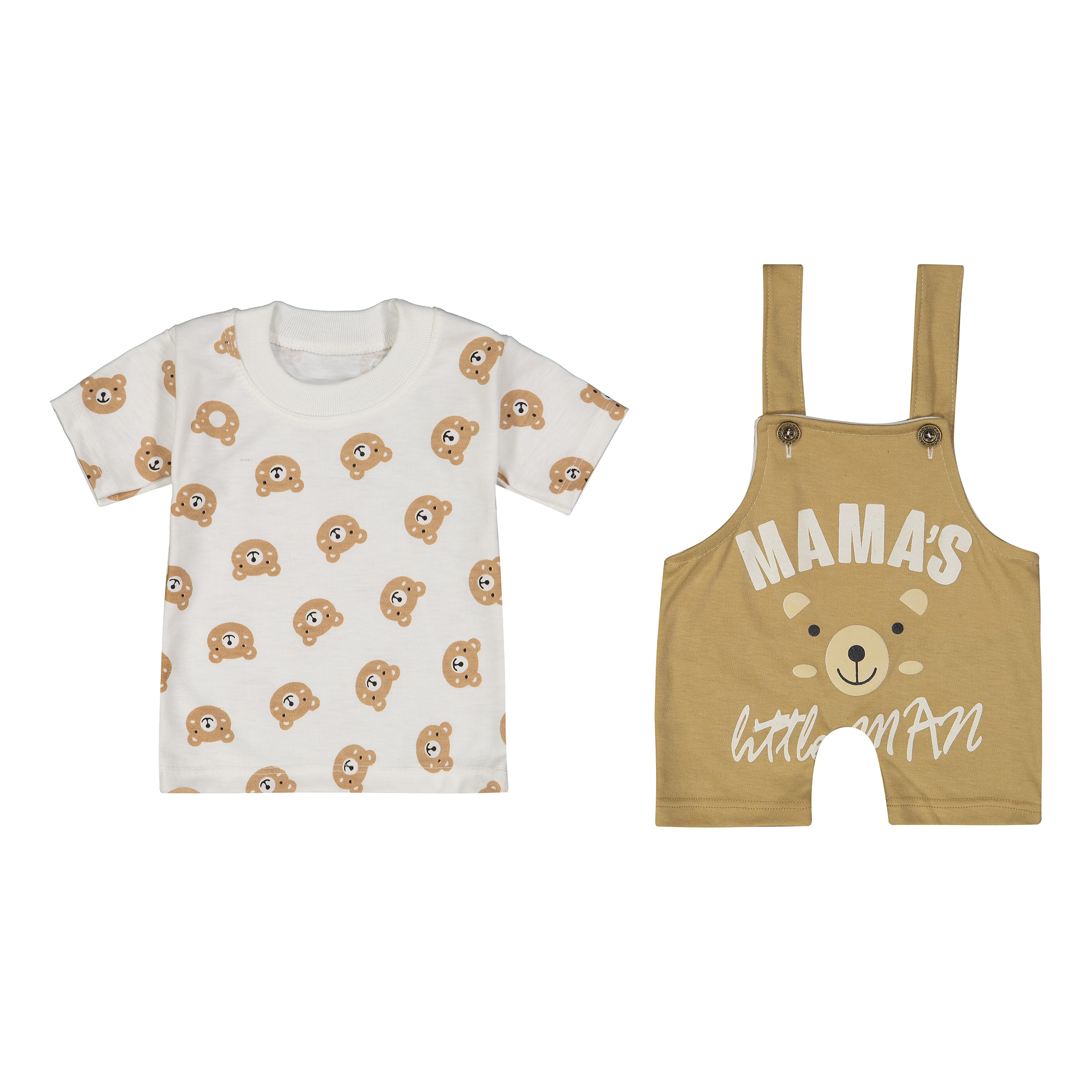 با ست سرهمی و تیشرت تدی، استایل کودکتان را زیباتر از همیشه کنید. این ست دوستداشتنی شامل یک تیشرت آستین کوتاه با چاپ خرسهای بامزه و یک سرهمی بندی با نوشتهی “MAMA’S Little Man” است که جلوهای خاص و کودکپسند به لباس نوزاد میدهد.