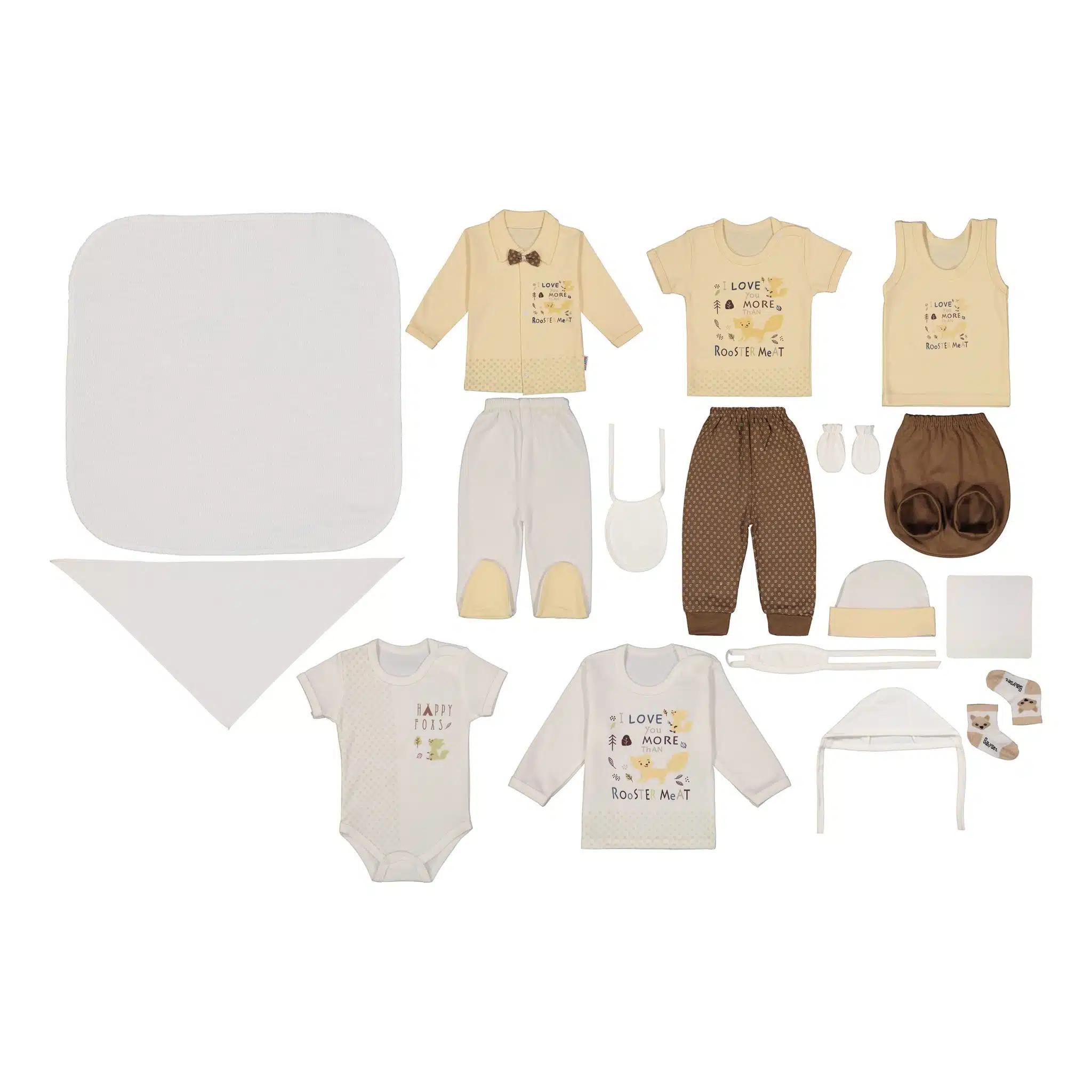 ست نوزادی 19 تکه طرح روباه – سفید و کرم | راحتی و زیبایی برای نوزاد شما