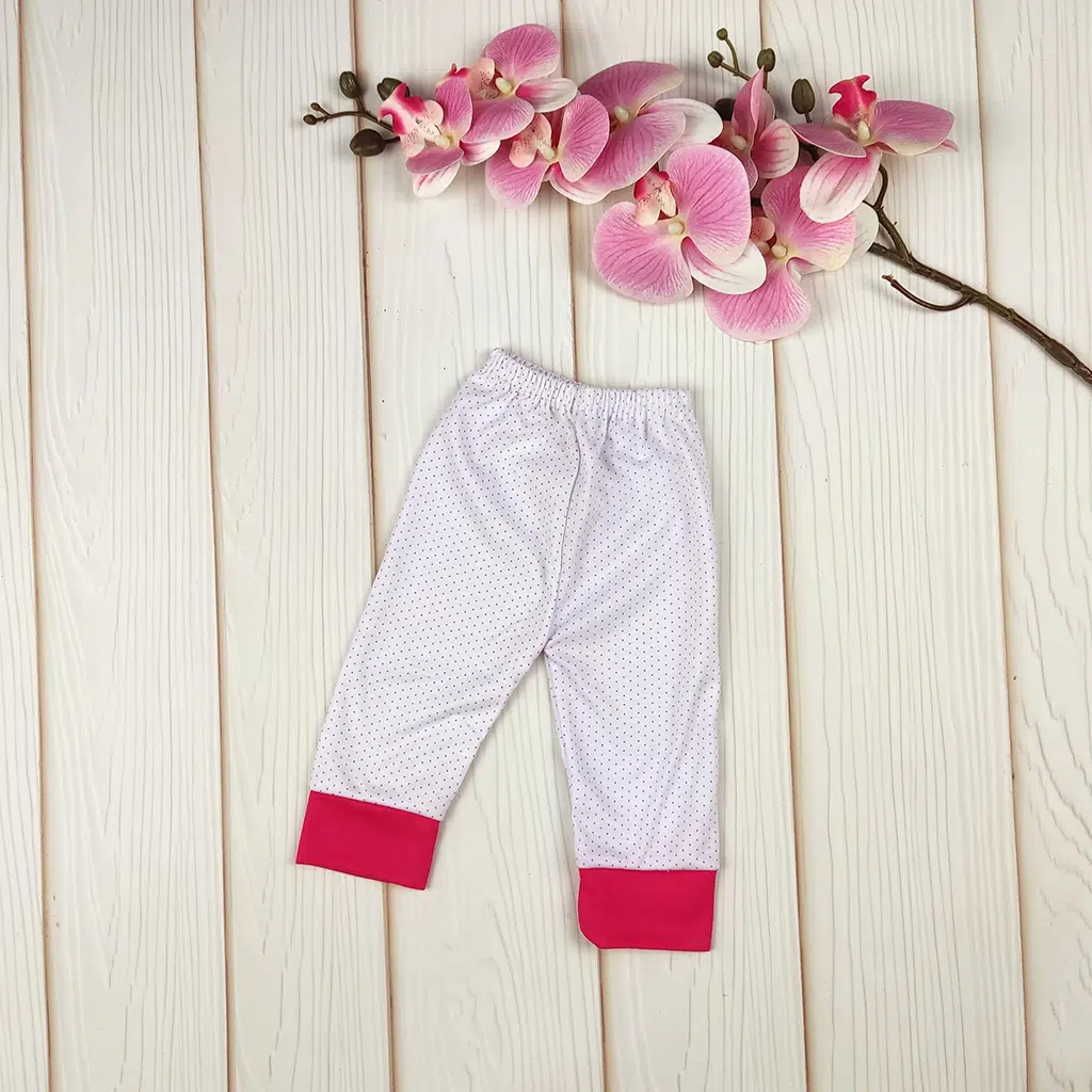 شلوار نوزادی سفید خالدار ساق‌صورتی – صفر تا سه ماه