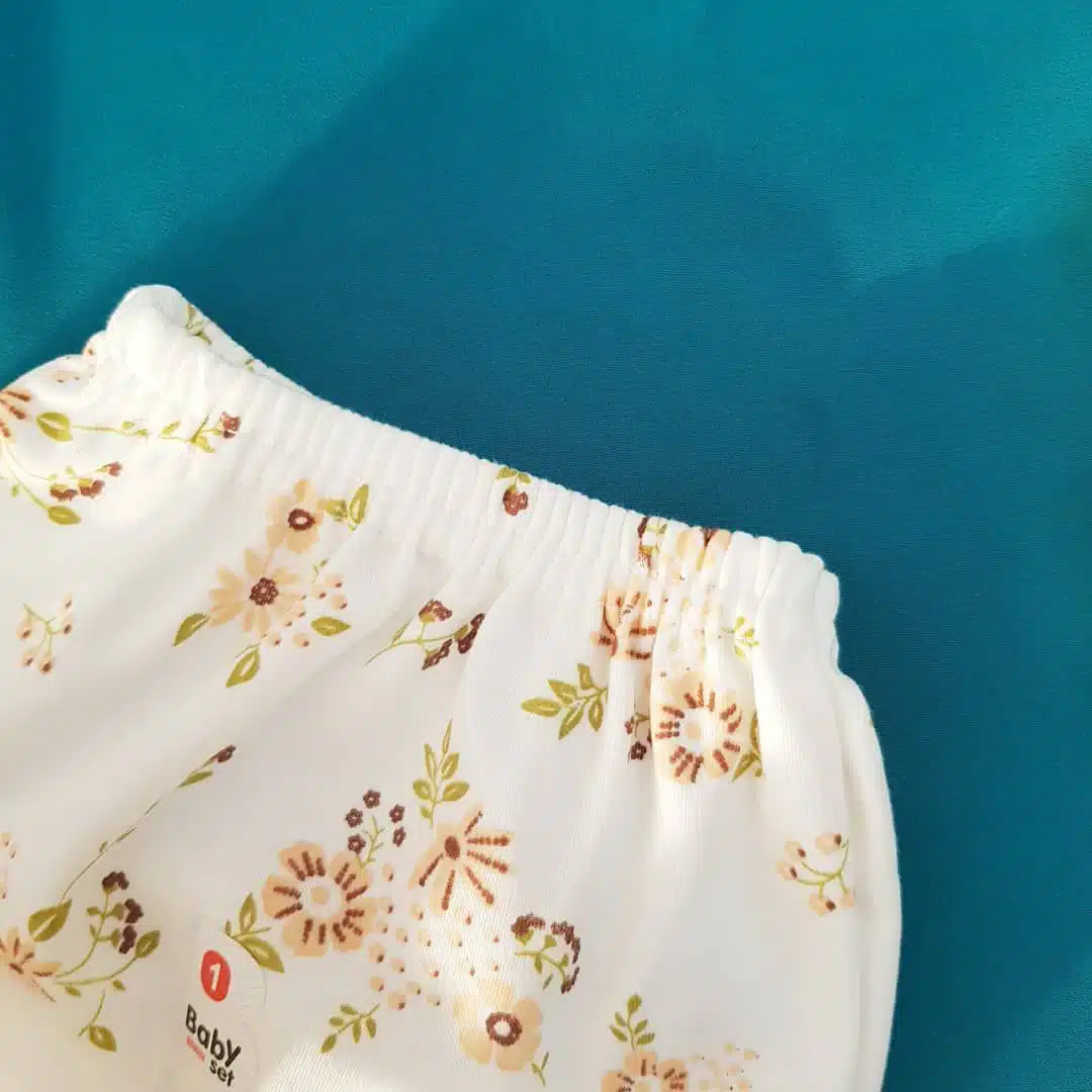 طراحان شورت نوزادی طرح گلدار گنجشک از پارچه‌ی پنبه‌ای نرم و باکیفیت استفاده کرده‌اند تا راحتی کامل را برای نوزاد فراهم کنند. این پارچه لطیف با تنفس‌پذیری بالا و نرمی فوق‌العاده، کاملاً با پوست حساس نوزادان سازگار است و حس آرامش را در طول روز به نوزاد هدیه می‌کند.