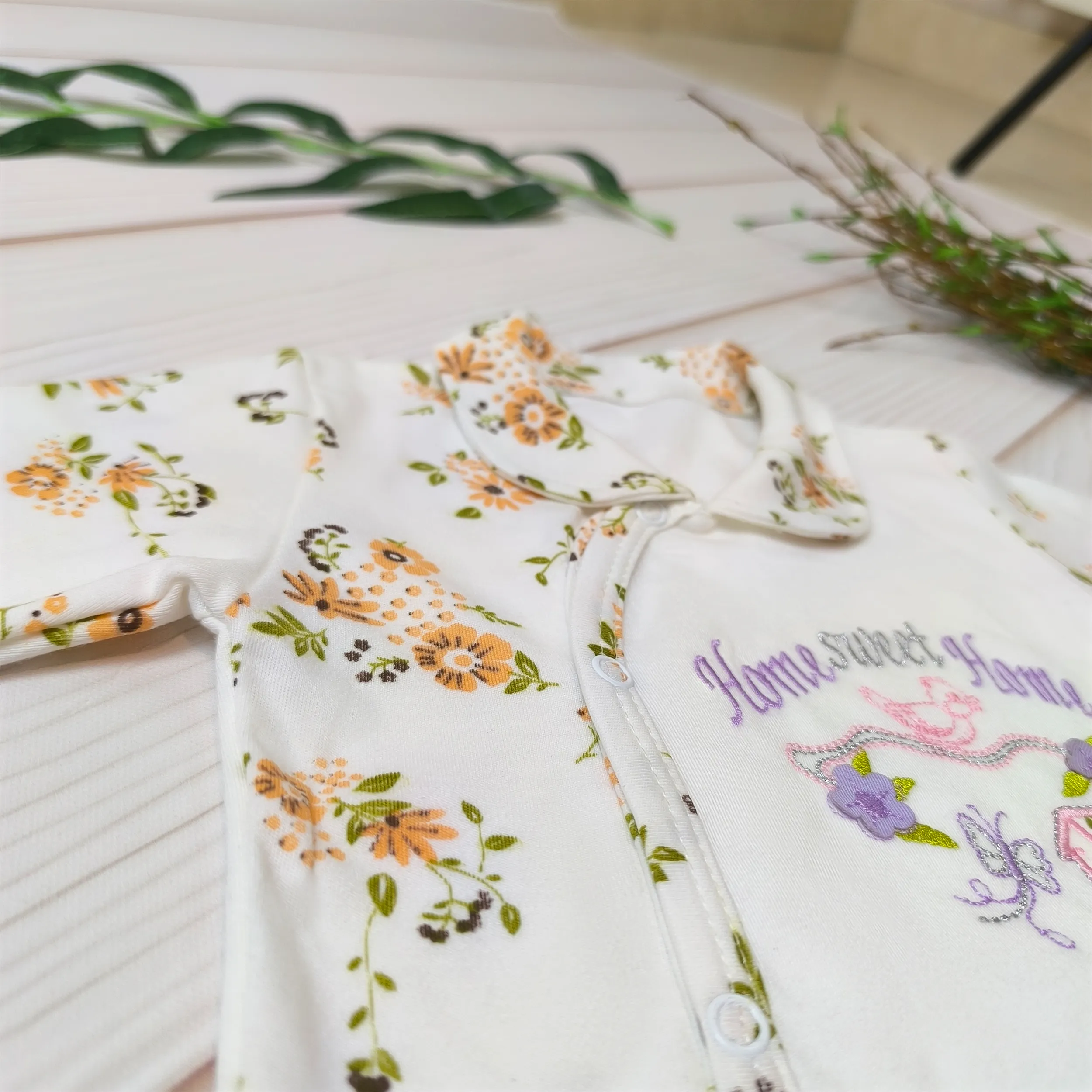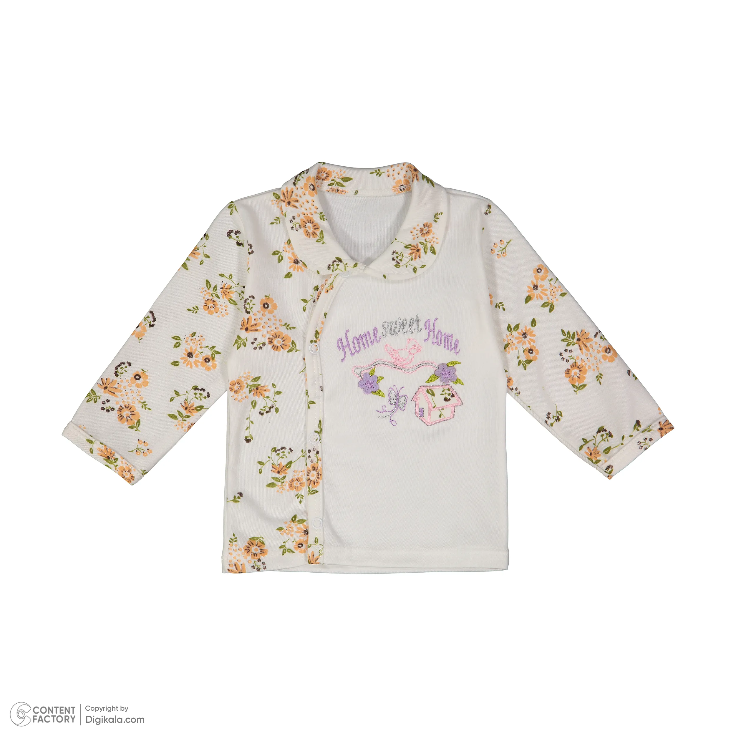 شومیز نوزادی مدل گنجشک با استفاده از پارچهی پنبهای نرم و باکیفیت طراحی شده است تا نوزاد شما احساس راحتی و آرامش داشته باشد. این پارچه تنفسپذیر و ضد حساسیت، پوست حساس نوزادان را کاملاً محافظت میکند و آرامش را در طول روز برای او فراهم میکند. طرح گلدار جذاب همراه با رنگهای ملایم و چاپ تصاویر گنجشک و خانه روی قسمت جلوی لباس، این شومیز را به انتخابی شیک و دوستداشتنی تبدیل کرده است. یقهدار بودن این لباس همراه با آستینهای بلند، آن را برای استفاده در فصول خنکتر نیز مناسب میکند. دکمههای فشاری جلو لباس به والدین کمک میکنند تا به راحتی لباس را بپوشانند یا درآورند، بدون ایجاد زحمت برای نوزاد.