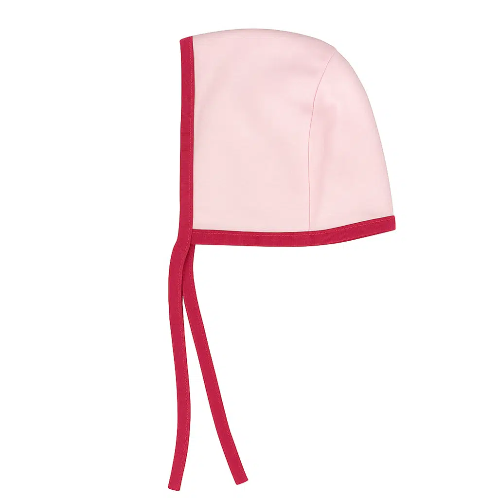 این کلاه نوزادی بنددار در رنگهای ملایم و محبوب عرضه شده است: