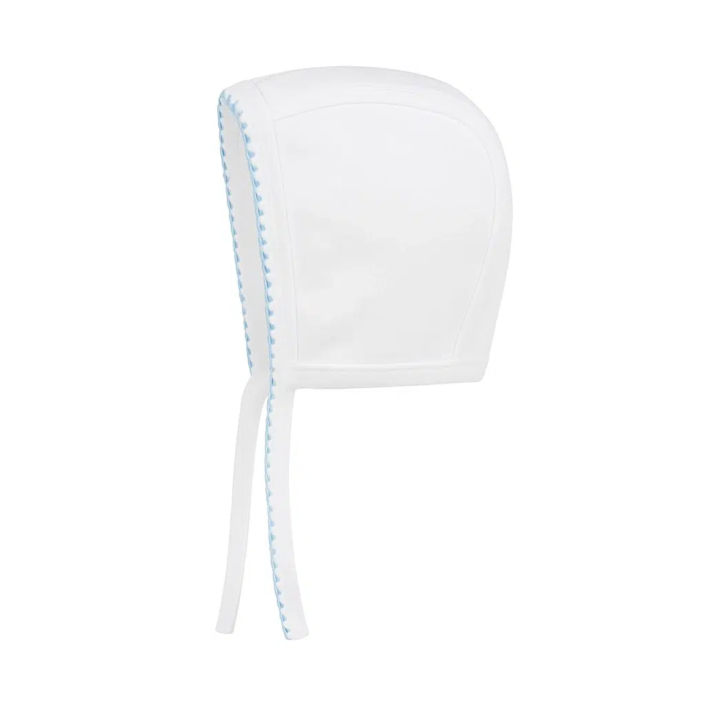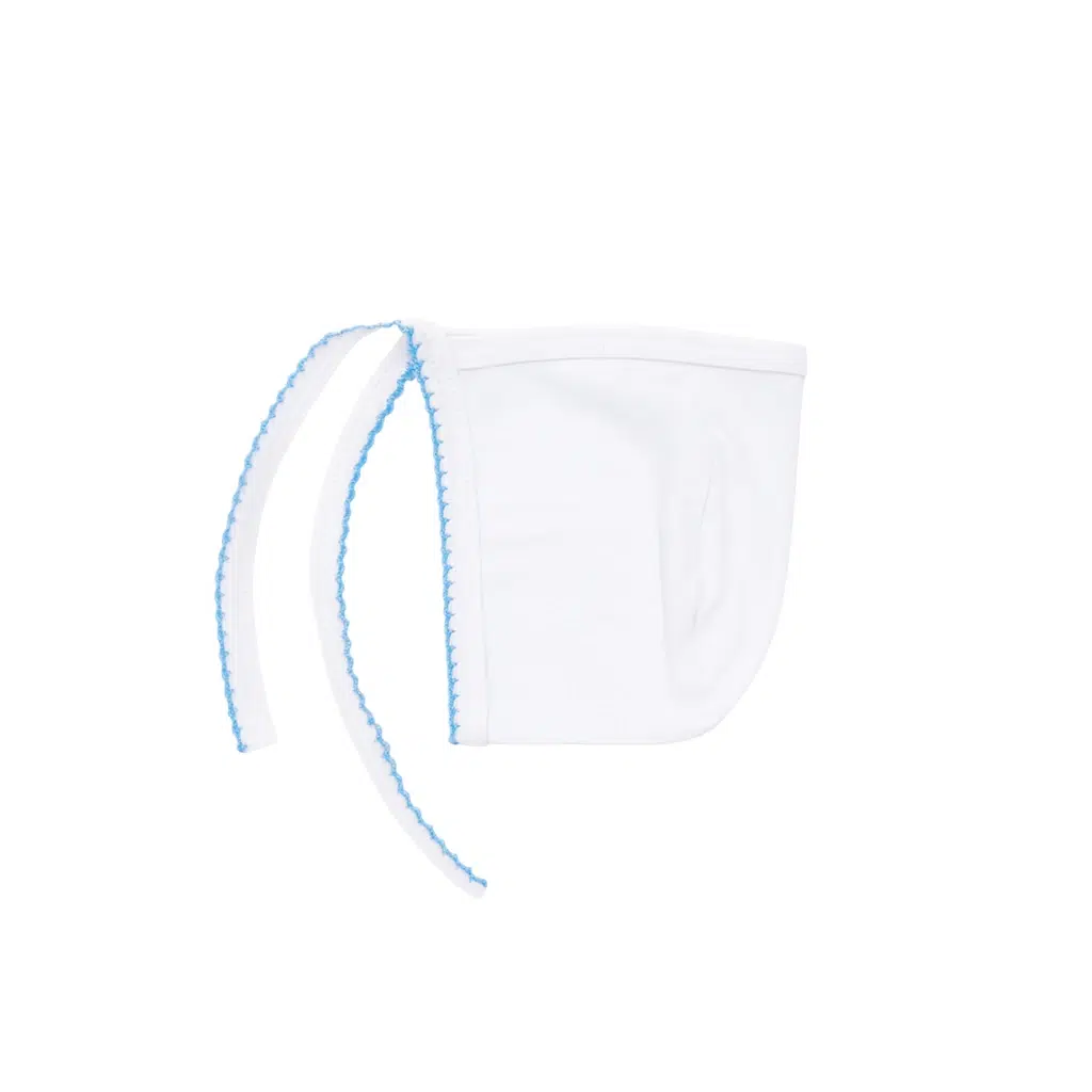 لبه‌های آبی دوخته‌شده، جلوه‌ای خاص و جذاب به این کلاه می‌دهند و آن را به گزینه‌ای مناسب برای استایل روزمره و حتی عکاسی نوزاد تبدیل کرده‌اند. این کلاه سبک، تنفس‌پذیر و ضدحساسیت بوده و برای پوست لطیف نوزاد کاملاً ایمن و مناسب است.