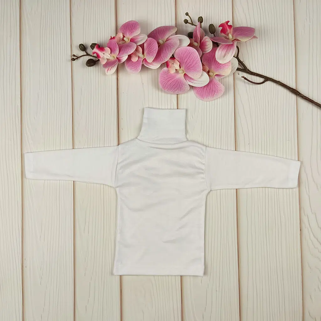 این یقه‌اسکی نوزادی سفید یکی از بهترین انتخاب‌ها برای فصل‌های خنک‌تر است. پارچه کاملاً پنبه‌ای و لطیف بوده و یقه بلند آن به‌خوبی از گردن نوزاد در برابر سرما محافظت می‌کند.