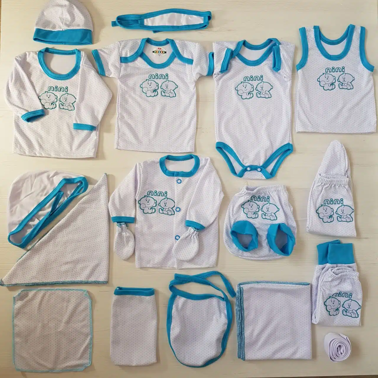 ۱۹ تکه ینی یه مجموعه از همه البسه ای که نوزاد در بدو به دنیا اومدن لازم داره . میشه گفت تو عضو پایه ثابت تمامی سیسمونی هاست. حالا بعضی ها به یکی دو مدل قانع میشن ولی بعضی ها که ذوق و شوق بیشتری دارن مثل مادرهایی که اولین تجربه بچه دار شدنشونه تنوع بیشتری میخوان . تولیدی ما ۳ سبک ۱۹ تکه تولید میکنه که از لحاظ قیمت و کیفیت متفاوتن تا همه اقشار جامعه با سطح درآمد مختلف بتونن براحتی این محصول مهم و کارآمد رو تهیه کنن.